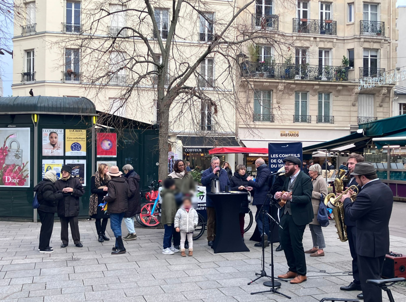 Le samedi 13 décembre 2025, les habitants du quartier ont profité d'une fanfare de Noël autour d'un vin chaud, sur la place de Lévis.