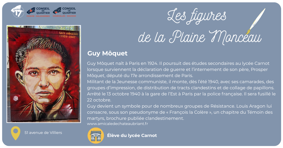 Retrouvez ici la présentation des conseils de quartier : Projet de parcours mémoriel au sein des quartiers du 17ème arrondissement : « Figures de la Plaine Monceau »