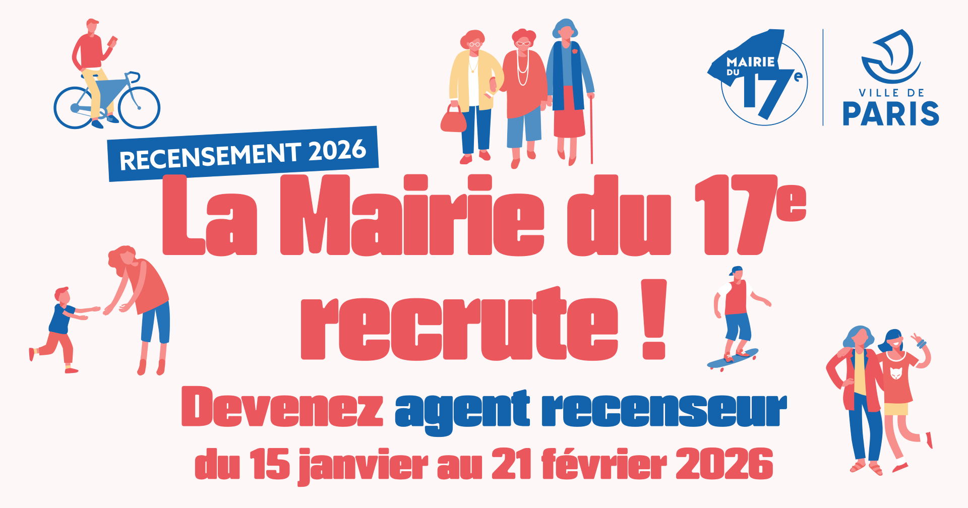 Comme chaque année, la Mairie du 17e réalise le recensement de sa population pour mieux connaître son évolution, ses besoins et ainsi développer de petits et grands projets pour y répondre. Une partie des logements et des habitants seront recensés à partir du 15 janvier 2026.