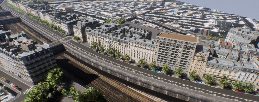 L'encorbellement des voies ferrées ne permettant aucune végétalisation, il est proposé de planter 32 arbres côté façades de la rue tout en conservant des emprises de stationnement alternant : places automobiles, 2 roues et zones de livraison.