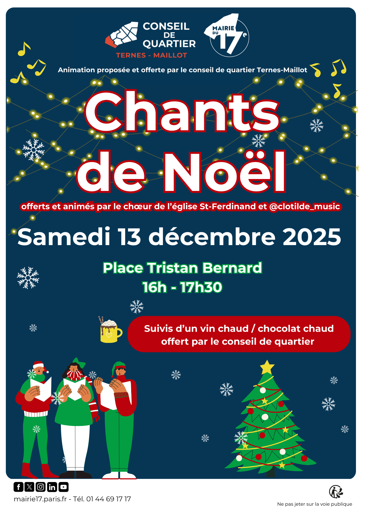 La prochaine animation locale du conseil de quartier se tiendra le samedi 13 décembre à 16h sur la place Tristan Bernard.